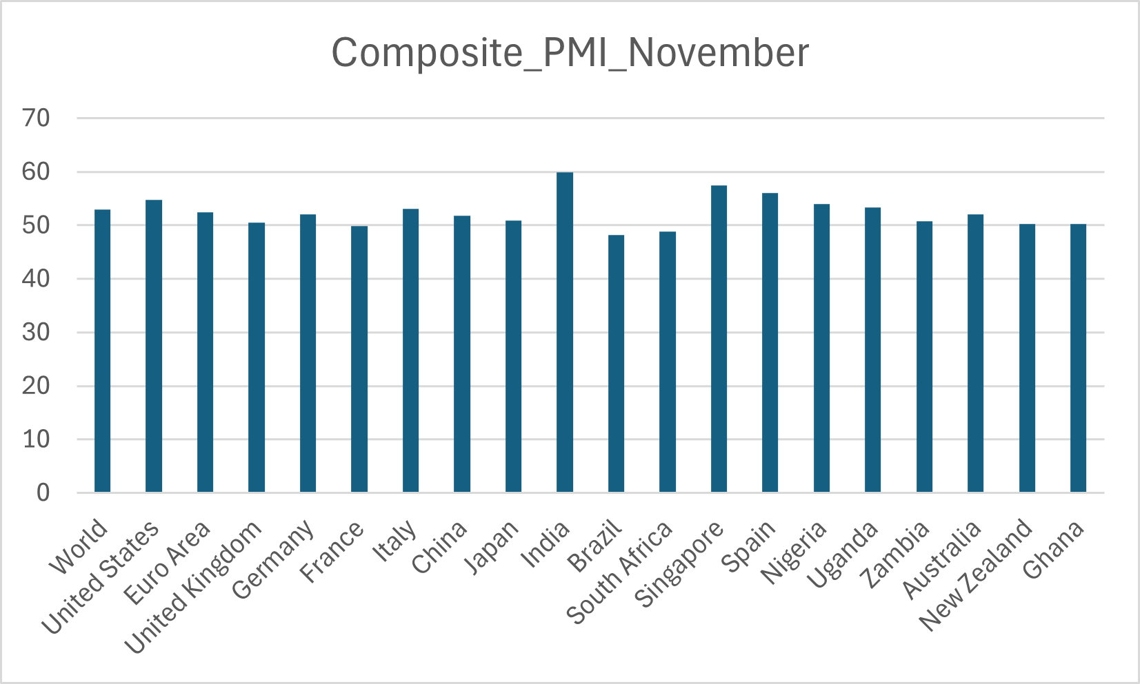 One of the clearest signals of this normalization was the continued disconnect between geopolitical risk indicators and market volatility. Despite ongoing conflicts in Eastern Europe and the Middle East, equity volatility remained subdued throughout November. The VIX index averaged near 14 during the month, well below its long run average of approximately 20. At the same time, news based geopolitical risk indices remained elevated relative to pre pandemic levels, reflecting sustained conflict coverage and policy uncertainty. The coexistence of high geopolitical risk and low volatility indicates that investors no longer expect these tensions to spill over into immediate systemic disruption. Instead, markets appear to assume that conflicts will remain contained geographically, with economic effects unfolding gradually rather than abruptly.