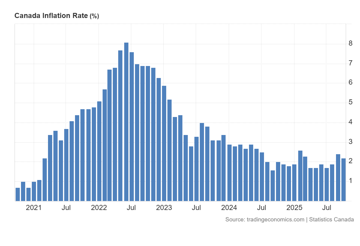 Canada’s inflation measures have returned close to the BoC’s target band, supporting early-2025 expectations for further easing.